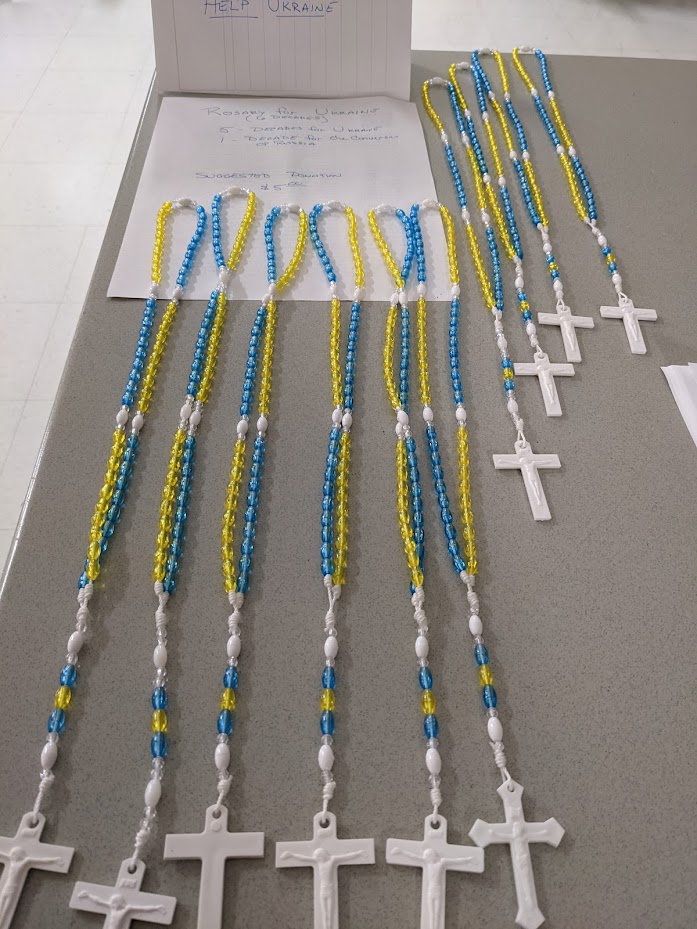 Our council is taking donations to help with medical and relief needs for Ukraine. These Yellow and Blue Rosaries are unique in that there are six decades instead of five. The first five decades are for Peace in Ukraine, the sixth decade is for the conversion of Russia. Ask a member for information on how to get your Rosary for Ukraine!