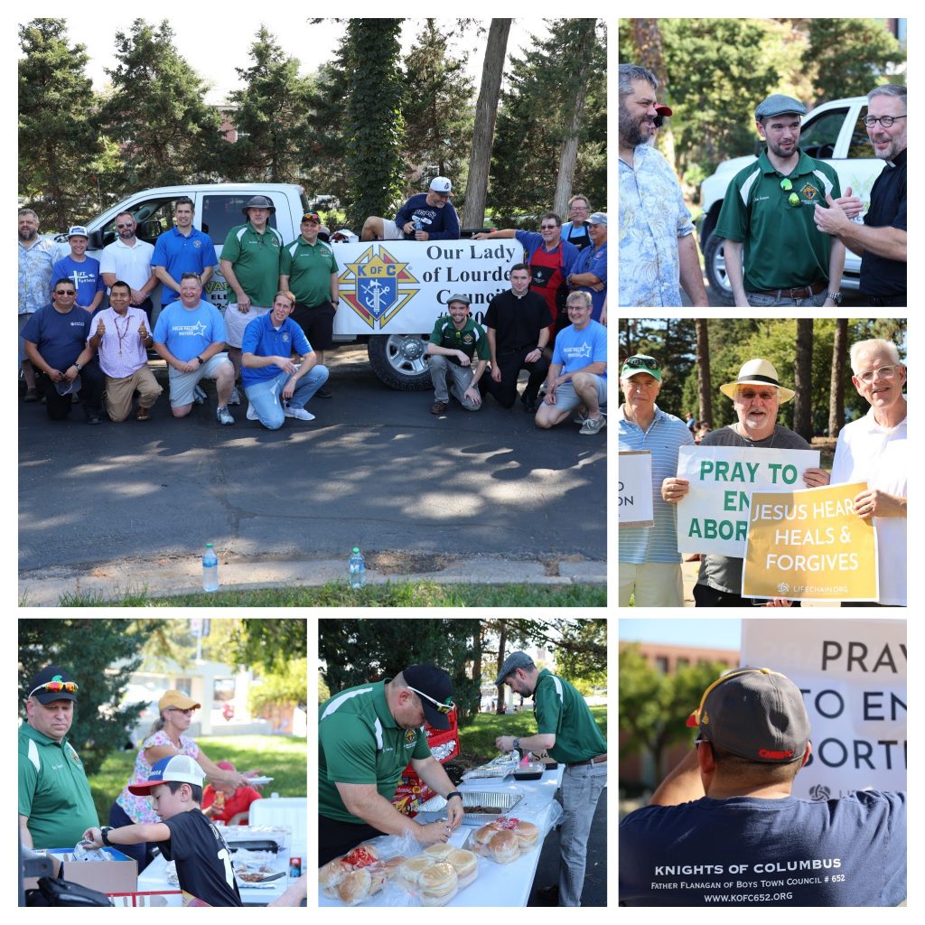 The Life Chain event in Omaha took place on October 1. St. Margaret Mary’s hosted a BBQ for participants after the event. Knights from St. Margaret Mary – Council 11800, Our Lady of Lourdes – Council 13080, and St Cecilia’s Father Flanagan of Boys Town – Council 652 came together to put on the BBQ with each council bringing resources and supplies for the BBQ and participating in the event.